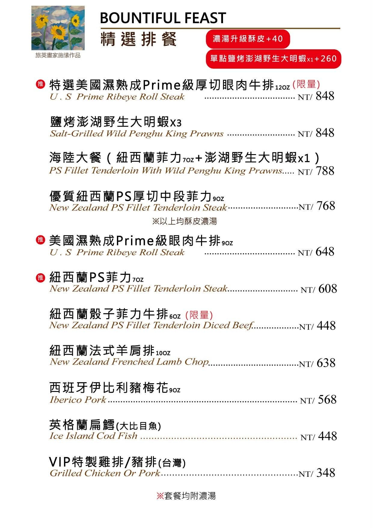 外帶菜單 (品項與價格將以實際用餐時為主)